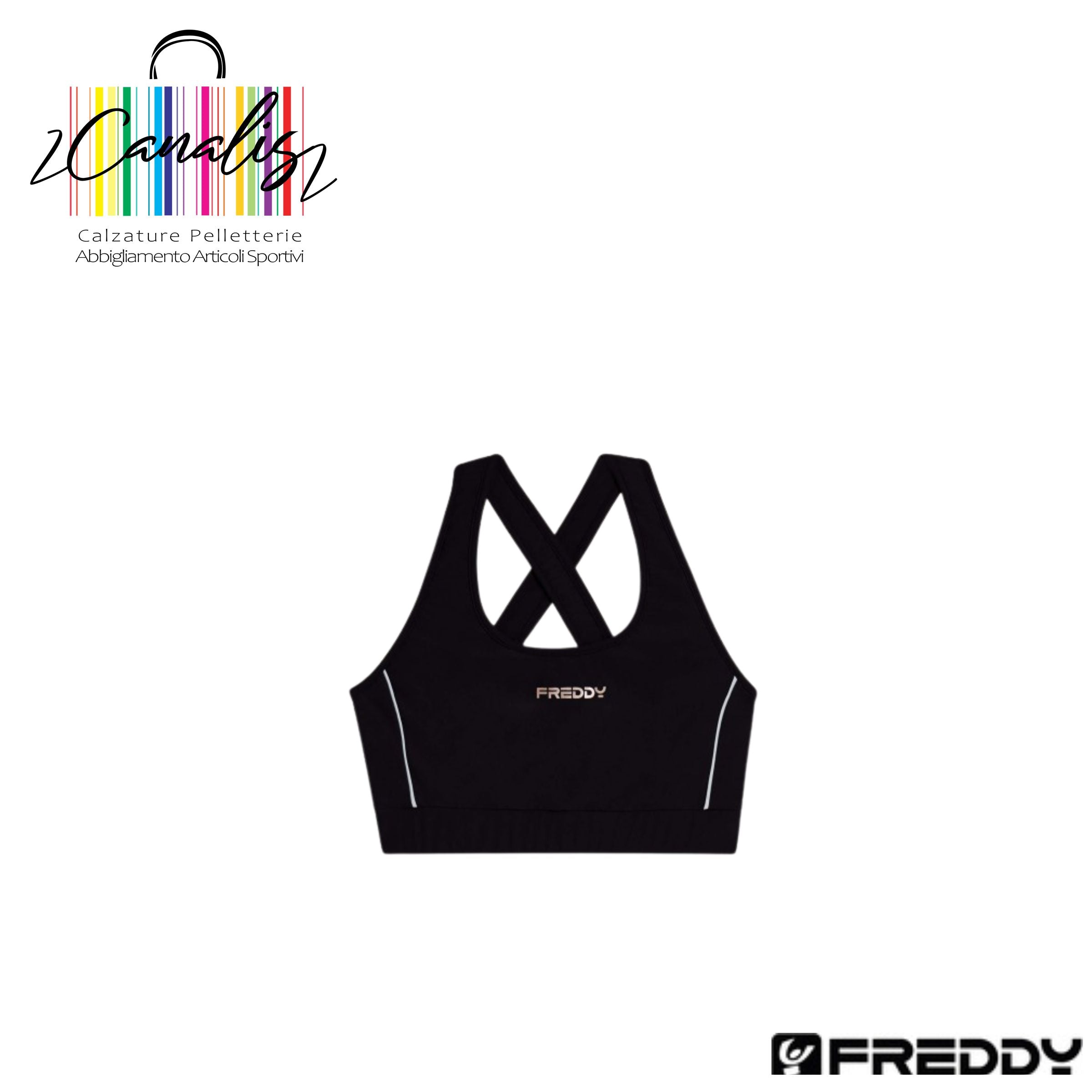 F25WSFB9 TOP tecnico con spalline incrociate e profili bianchI FREDDY